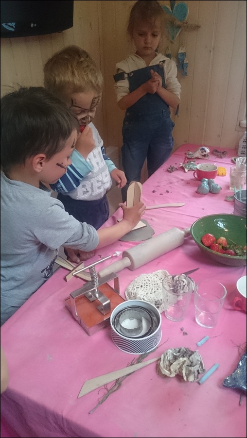 • wszelkie niezbędne materiały ( glina, narzędzia, szkliwa, wałki, foremki, formy)