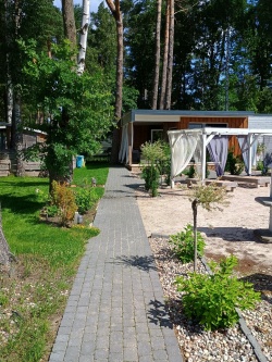 Otoczenie sprzyja relaksowi ? jest wkomponowane w krajobraz pełen drzew, co daje wrażenie bliskości natury. Dodatkowo na terenie obiektu znajduje się miejsce do odpoczynku, spotkań integracyjnych a także przestrzeń do zabawy dla dzieci. Teren ogrodzony.